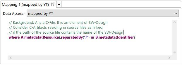 Live validation (i.e., validation during edit) of text in the mapping area for data access, artifact types and link types is now triggered more often (e.g. if one adds an attribute) so that the error markers are better up-to-date.