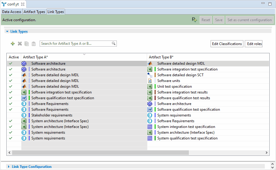 The Polarion adapter is now able to understend the attributes of links between workitems. It is possible to read only relevant links (see example below) and to define custom evaluations based on these attributes, e.g. to create a query which lists all „branchedFrom” workItems together with their origin.